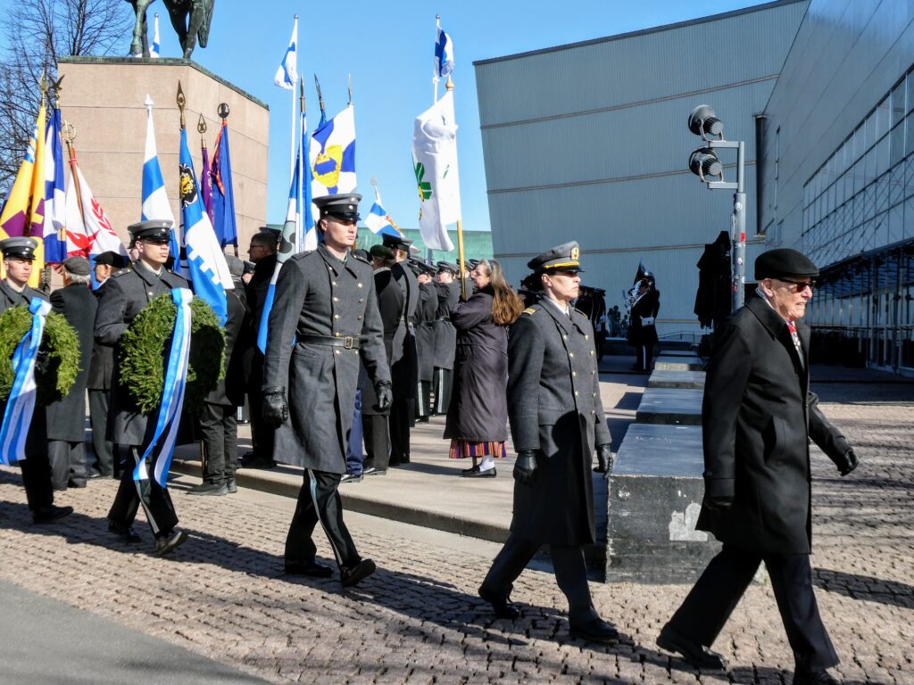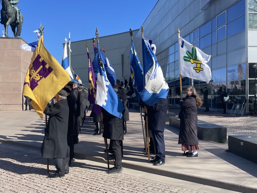Kansallista veteraanipäivää vietettiin 27.4.2026. Mikkelissä järjestetyn valtakunnallisen pääjuhlan teemana oli ”Yhdessä eteenpäin” ja keskeisenä tavoitteena oli veteraanien perinnön siirtäminen seuraaville sukupolville. Tämä näkyi hienosti myös paikallisesti täällä Helsingissä. Mannerheimin patsaalla kokoonnuttiin perinteisiin kunnianosoituksiin ja myös yhdistyksemme lippu liehui uljaasti lippulinnassa.